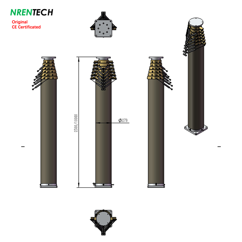 10m Lockable Pneumatic Telescopic Telescopic Mast 300kg Payload