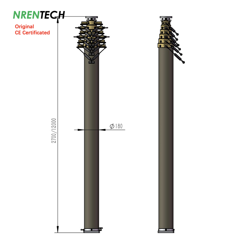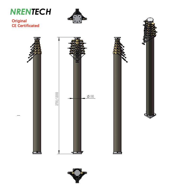 12m Locking Pneumatic Telescopic Mast 50kg payloads-2.7m closed height