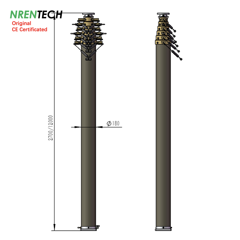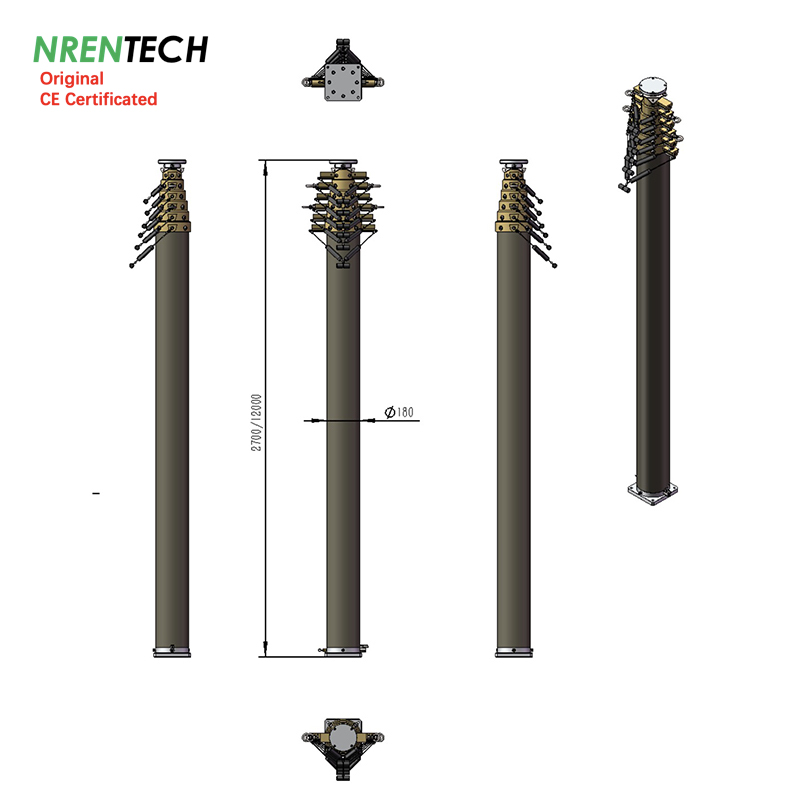 12m Locking Pneumatic Telescopic Mast 50kg payloads-2.7m closed height