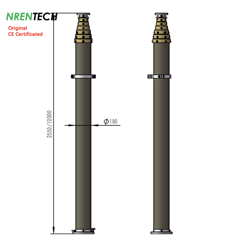 12m Non-lockable Pneumatic Telescopic Mast-50kg payload 2.55m retracted height