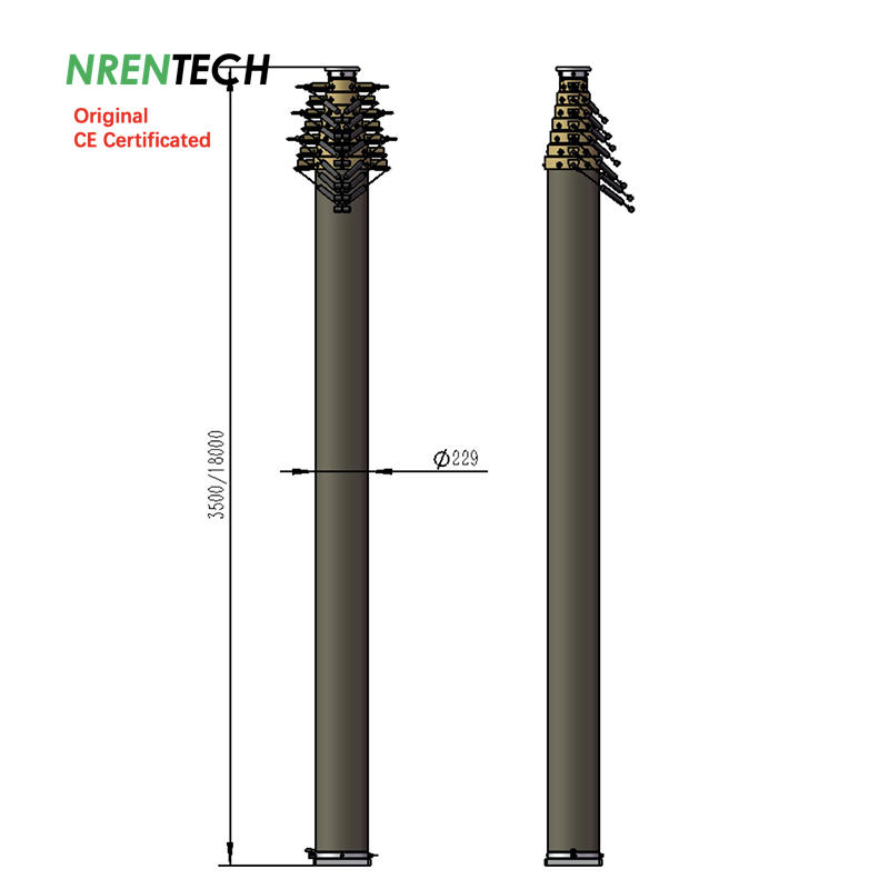 Guy rope kits: 4 x 4 (4 layers, 4 ropes each layer), mounting radius 18m, 4 mounting stakes.