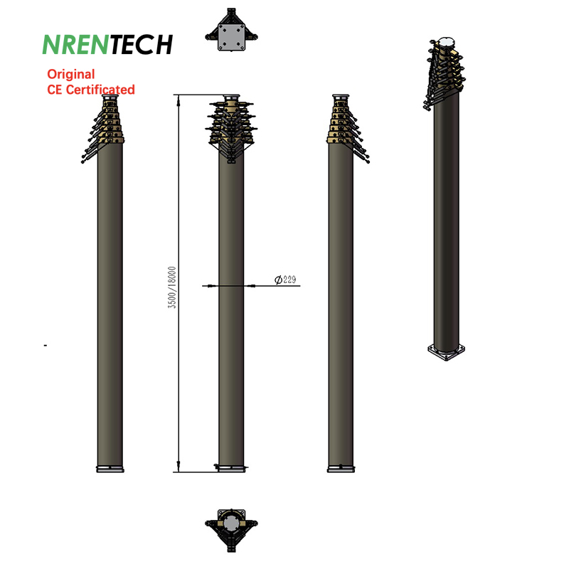 18m Lockable Pneumatic Telescopic Mast 70kg Payload
