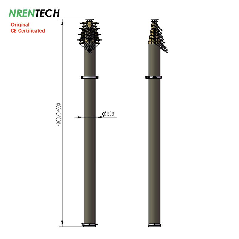 24m Lockable Pneumatic Telescopic Mast 50kg payload 4.2m closed height