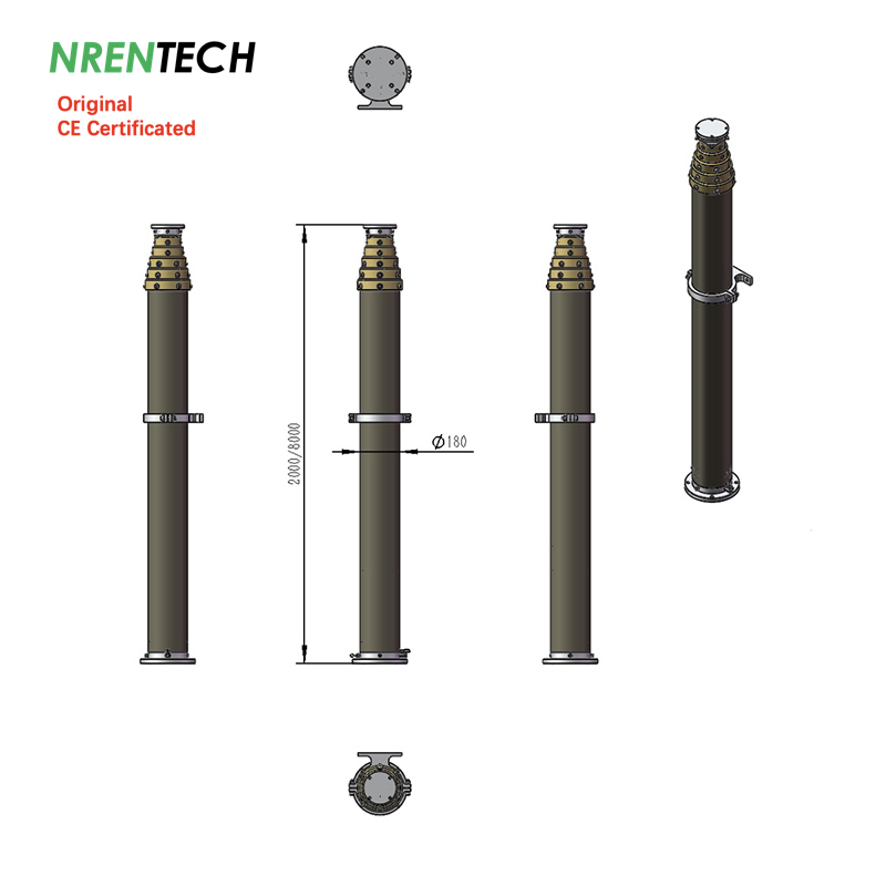 8m Non Lockable Pneumatic Telescopic Mast 100kg payload 2m Retracted Height NR-2.0-8.0-100N-6S-82-180