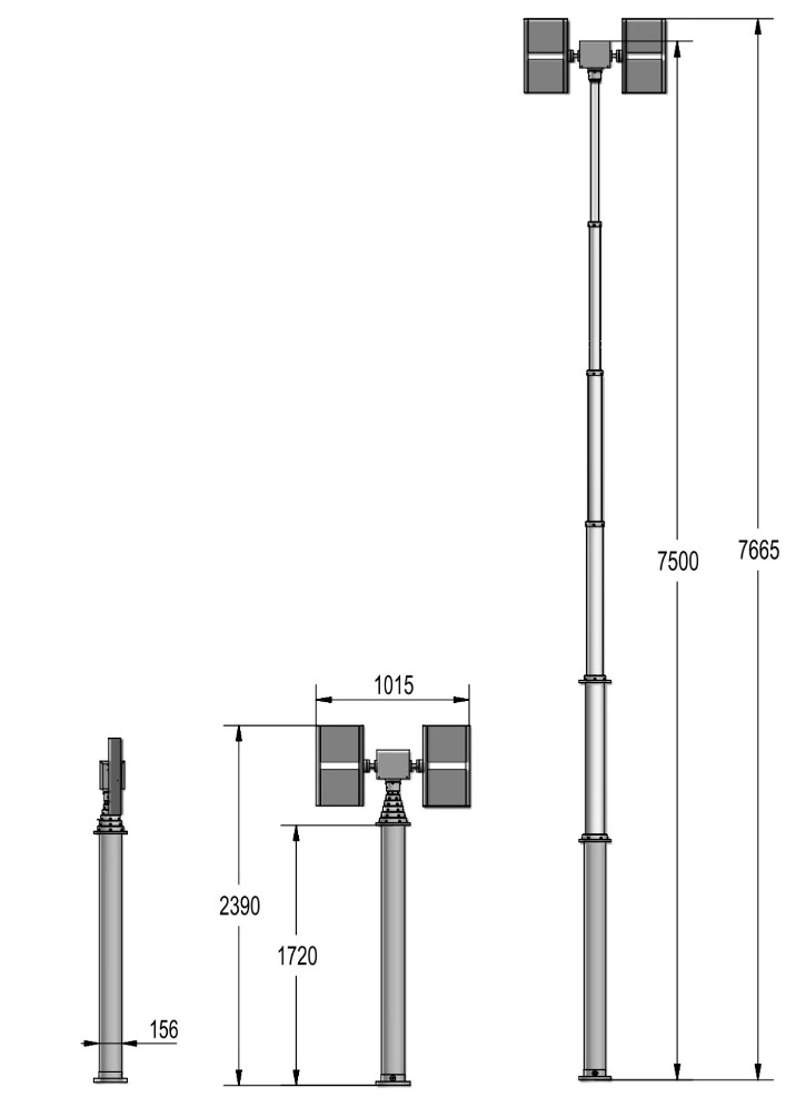 7.5m Pneumatic Telescopic Light Mast Tower-Vertical Mounted for fire truck